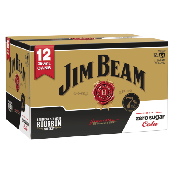 Jim Beam Gold 7% Zero 12 Pack Cans 250ml