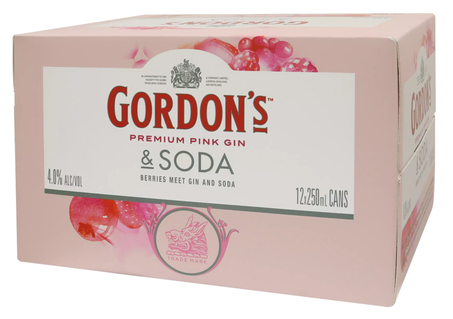 Gordons Pink Gin and Soda 4% 250mL Can 12 Pack