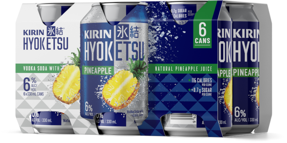 Kirin Hyoketsu Pineapple is made from vodka, soda and frozen natural pineapple juice, using Hyoten Toketsu technology to lock in the freshness and intensity of the natural pineapple flavour.