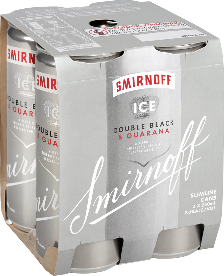 Smirnoff Ice Double Black Guarana 7% 250mL Can 4 Pack